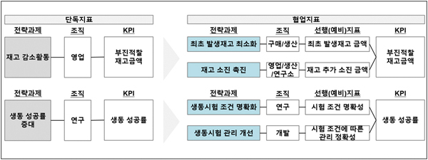 이를테면,일반적으로 R&D 부서가성과에 책임을 지게 되는 ‘신성장동력 확보’와 같은 전략적 과제에 대해서는 영업/마케팅 조직 측에서 제품화와 관련한 글로벌 Practice를 확보하여 제공하려는 노력,생산 및 시설 측면에서 성장동력 대상 제품에 대한 제품화 공정 및 이에 대한 합리적 시설 배치 등의 노력이 유기적으로 조화를 이루어야만 의도했던 성과를 창출할 수 있다.