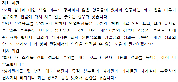 앞서 언급한 제약산업의 첫 번째 특징‘제너릭 약품 시장의 격심한 경쟁’에 따라,그 동안 많은 제약사들은 영업조직의 성과관리에 가장 큰 비중을 두어왔다.