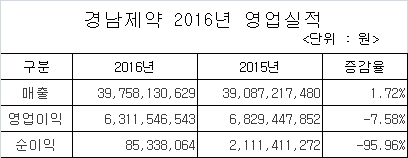 경남제약, 2016년 매출 398억…전년比 1.7% 증가