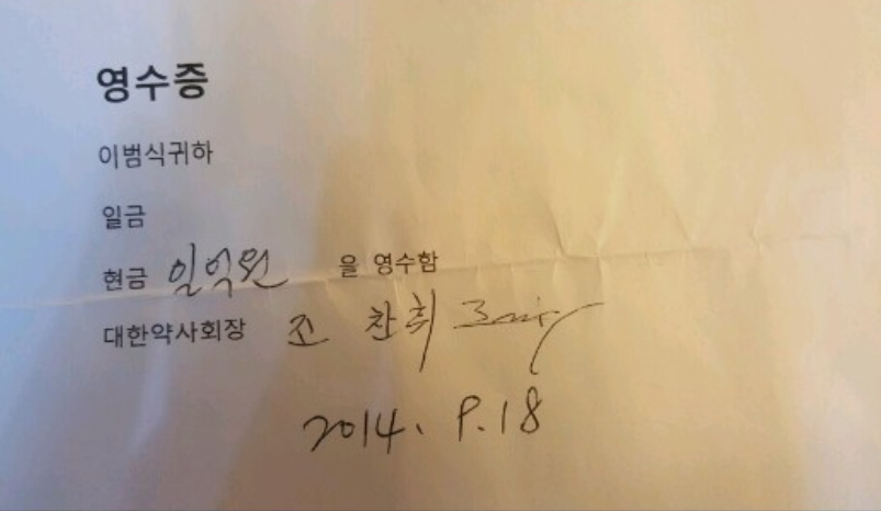 가 계약사와 함께 현금 1억원을 이범식 약사에게서 조찬휘 회장이 받았다는 영수증도 같은 날(2014년 9월 18일) 작성된 것으로 두 사람 간의 돈이 오간 계약이 실제로 이루어졌음을 알 수 있었다.