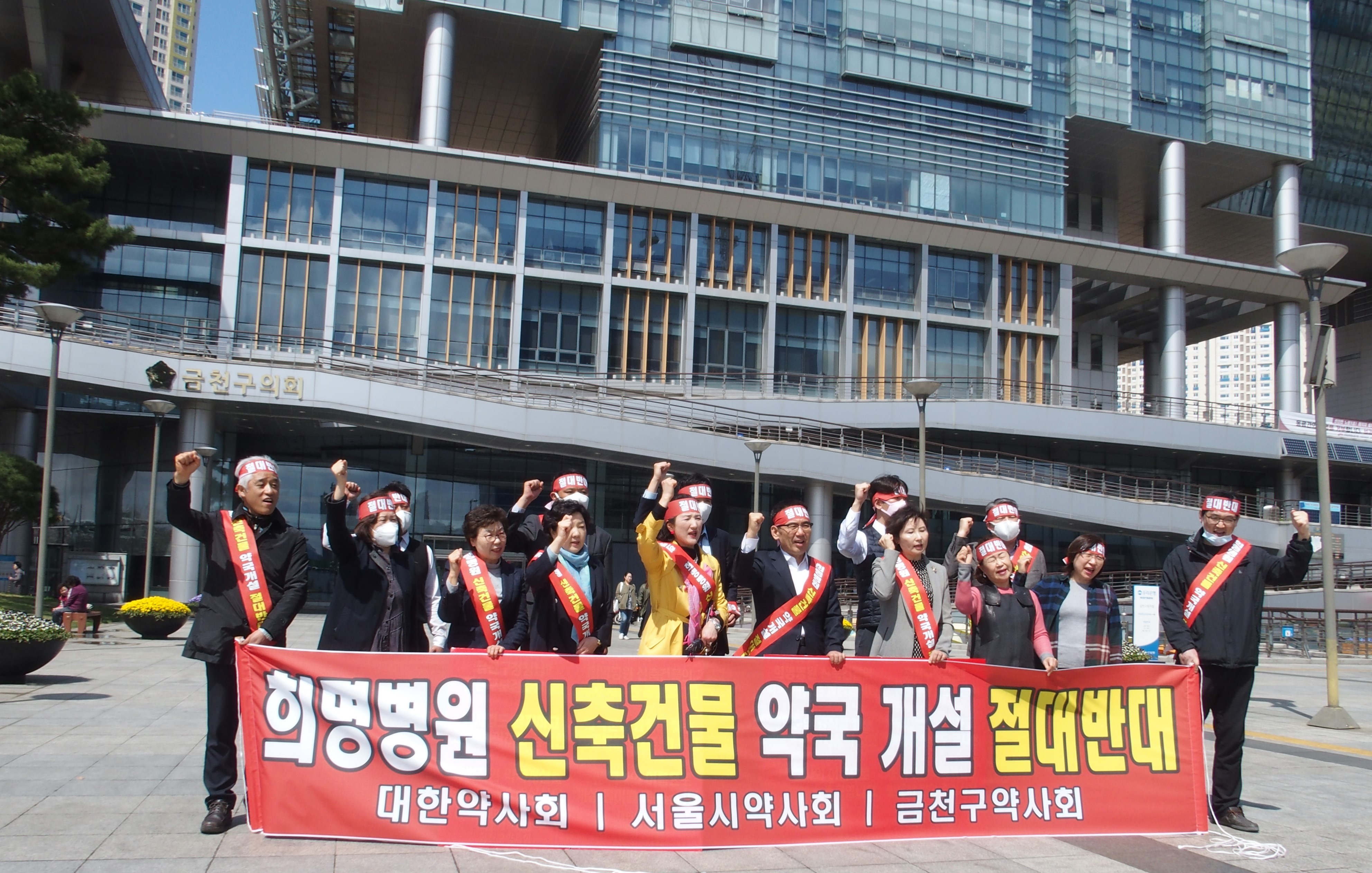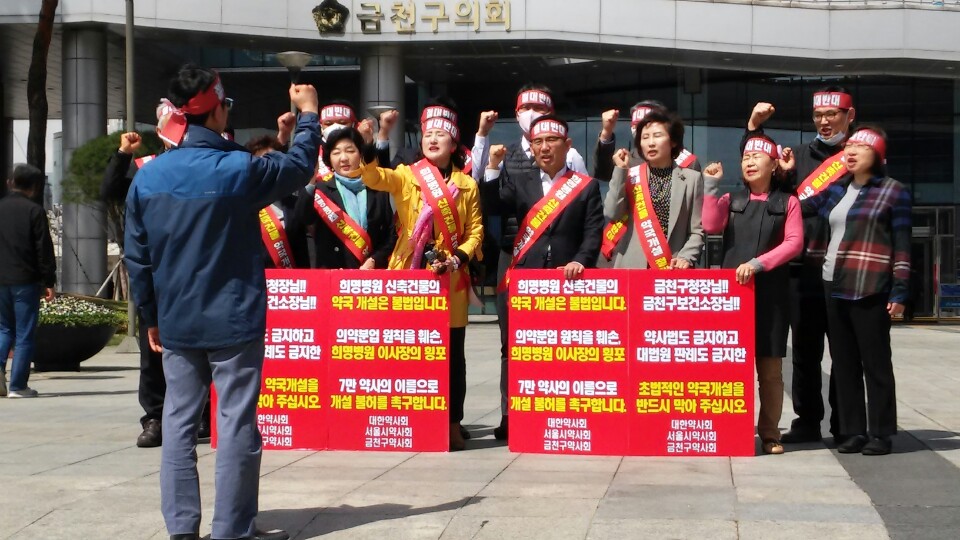 금천구약사회(회장 이명희)는 지난 3일부터 금천구청 앞에서 반대 1인 시위를 실시, 4일에는 항의 집회도 함께 열어 ‘희명병원 신축건물 내 약국 개설 움직임'을 저지하는데 총력을 기울이고 있다.