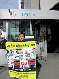 글리벡 공대위 소속 단체인 진보네트워크센터의 오병일 사무국장과 김정우 국제연대활동가는 지난달 28일 스위스 바젤에 있는 노바티스 본사를 방문해 한국 백혈병 환자들의 투쟁상황에 대해 설명하고 글리벡 약가 인하를 요구했다.