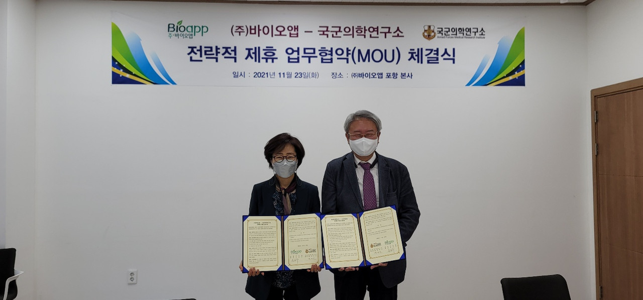 글로벌 바이오 제약 회사 바이오앱(대표 손은주)이 국군의학연구소(소장 박규은)와 ‘전략적 제휴 업무협약’을 체결했다고 밝혔다.