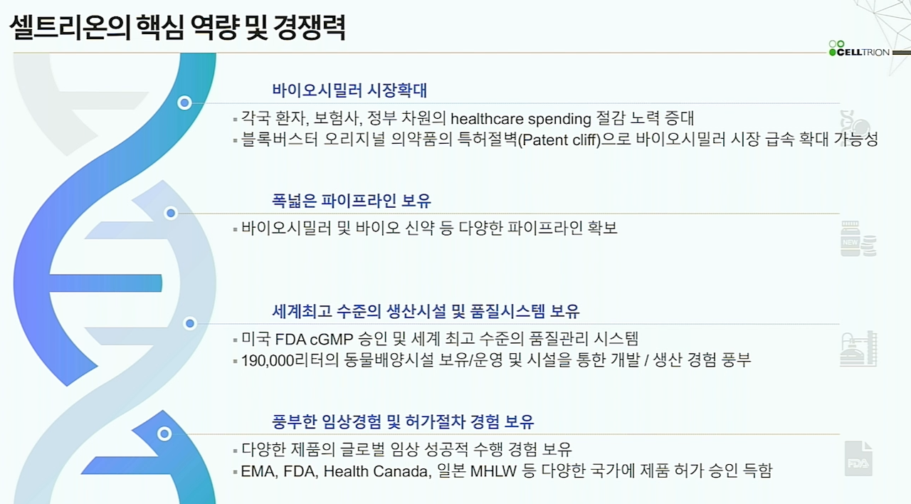 마지막으로 “항체 바이오시밀러 시장을 개척한 셀트리온은 대한민국 대표 바이오 기업으로서 세계 탑 10의 빅 파마가 될 때까지 쉬지 않고 열심히 달릴 것”이라고 전했다.