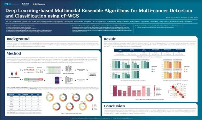 이번 학술대회에서 GC지놈은 ‘Deep Learning-based Multimodal Ensemble Algorithms for Multi-cancer Detection and Classification using cf-WGS’를 주제로 자사가 개발 중인 딥러닝 기반 AI를 활용한 암 조기 진단 연구 결과를 소개했다.