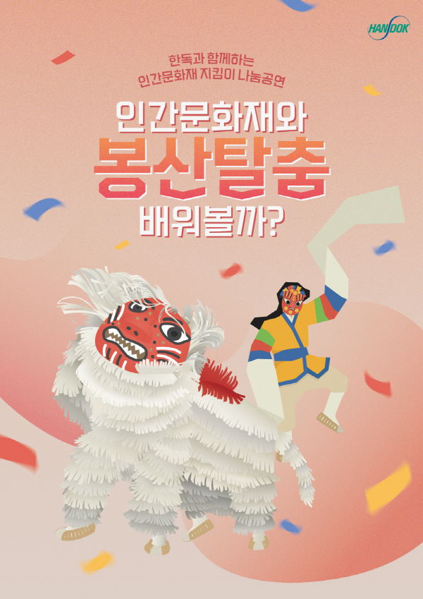 한독(대표이사 김영진, 백진기)이 우리 전통문화를 직접 보고 체험하는 ‘인간문화재 지킴이 나눔공연’ 참가자를 모집한다.
