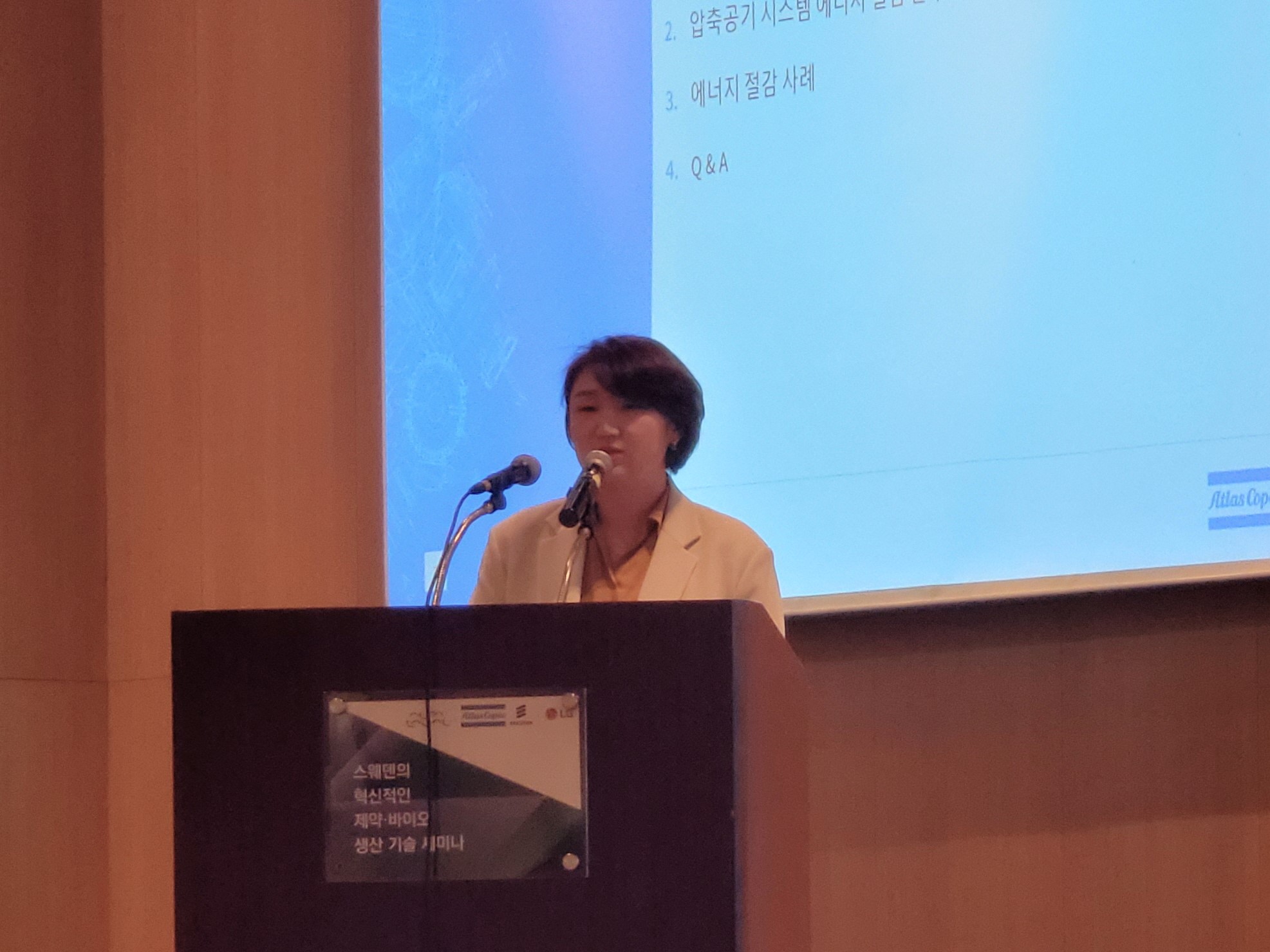 박선영 아트라스콥코 에너지 사업개발 팀장은 '혁신적 IoT에 기반한 압축공기 시스템 에너지 절감 및 유지보수 솔루션'을 주제로 발표했다.