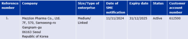 회사는 이번 지정에 앞서 유럽 NDA 제출(EMA 조건부 마케팅 허가 승인) 첫 단계로 유럽 SME 지정을 추진해 왔고, 9월 지정 신청에 필요한 자료를 전문 기관으로 제출해 검토를 요청했으며, 해당 기관 검토 완료 후 SME 지정을 신청했다.