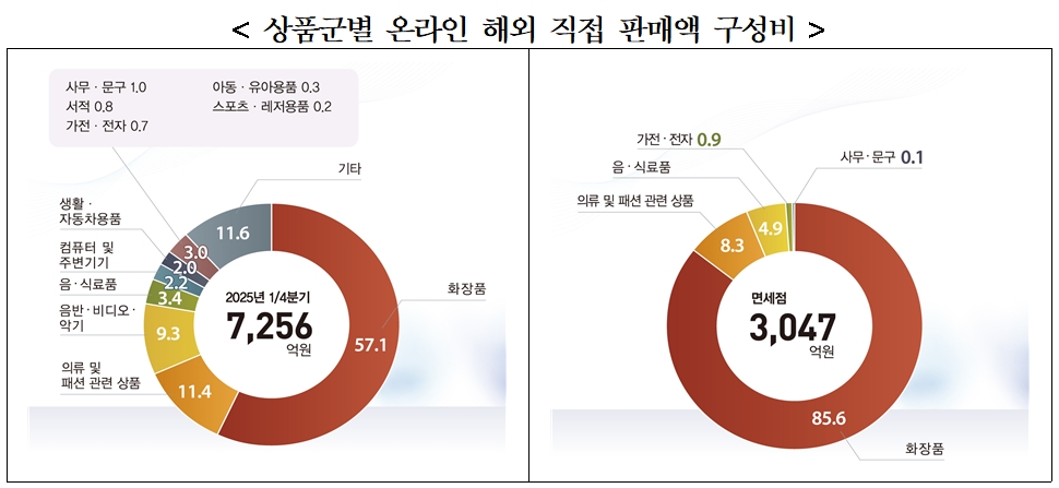 ▲ 2025년 1분기, 상품군별 온라인 해외 직접 판매액 구성비. ⓒ통계청