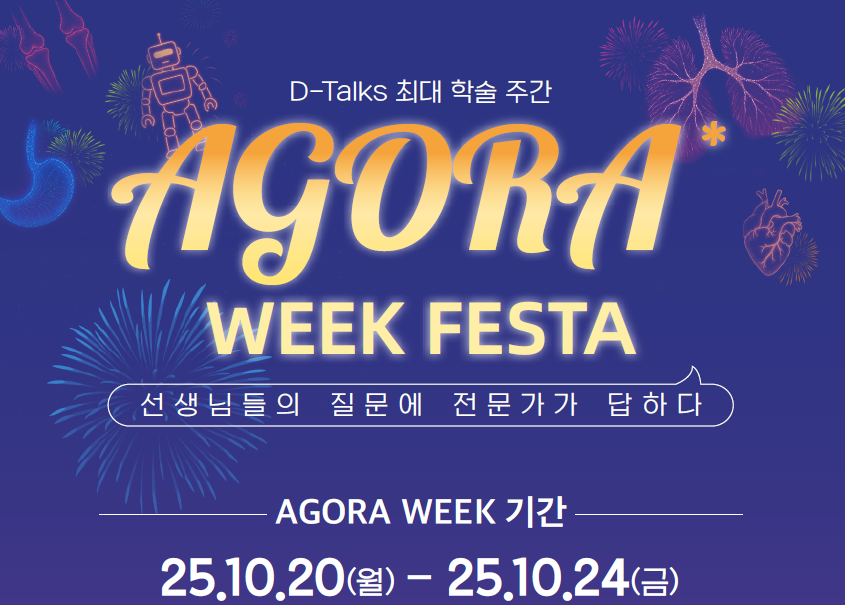 ‘디톡스(D-Talks)‘는 2022년 개설된 대원제약의 의료 정보 교류 플랫폼으로, ‘건강한 디지털 습관 D-Talks‘를 슬로건으로 연간 200회 이상의 온라인 심포지엄을 운영하고 있다. AGORA WEEK는 디톡스를 통해 상·하반기 두 차례 진행되는 종합 학술대회로, 개원가 진료에 도움이 되는 질환 교육과 각 분야 전문가와의 질의응답도 가능한 것이 특징이다.