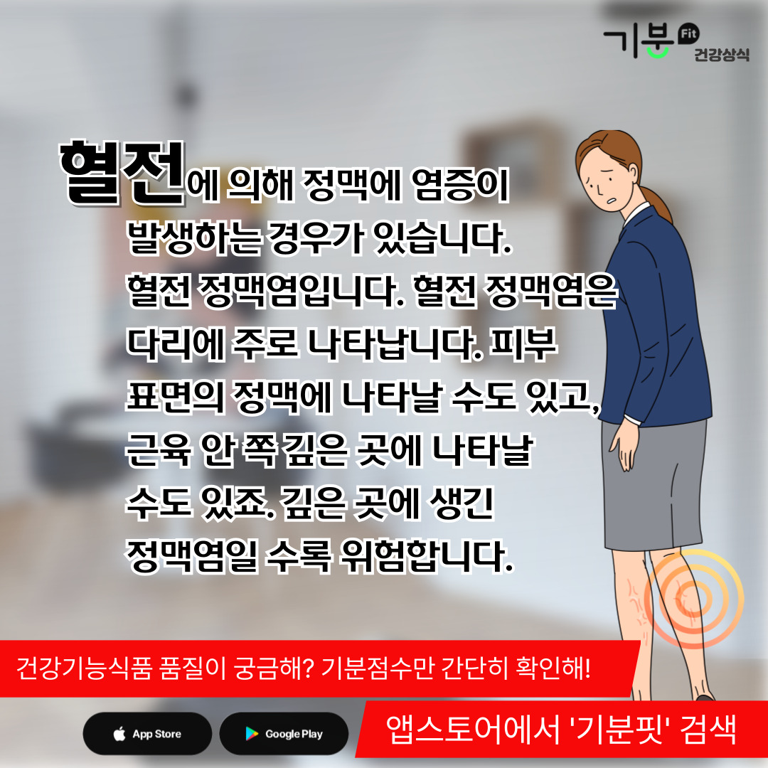 혈전에 의해 다리 정맥에 염증이 발생하는 경우가 있다.