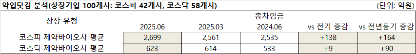 코스피 상장 제약바이오기업 총차입금이 코스닥 상장 제약바이오기업 4배를 훌쩍 뛰어 넘은 것으로 집게됐다. 약업닷컴이 코스피상장 제약바이오기업 42곳과 코스닥상장 제약바이오제약 올해 상반기 차입금을 분석한 결과 코스피제약사가 평균 2699억원으로 코스닥제약사 평균 623억원보다 4배 이상 높았다. 코스피제약사는 전년동기대비 164억원 증가했고, 코스닥제약사는 90억원 증가했다. 전기대비는 코스닥제약이 138억원 증가했고,코스닥제약은 8억원 감소했다.