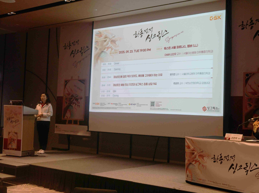 같은 날 추은주 순천향대학교 부천병원 감염내과 교수는 대상포진 예방 최신 지견에 대한 주제 발표를 통해 국내 대상포진 백신 권고 가이드라인 내용과 이와 관련한 싱그릭스의 예방 효과에 대해 소개했다.