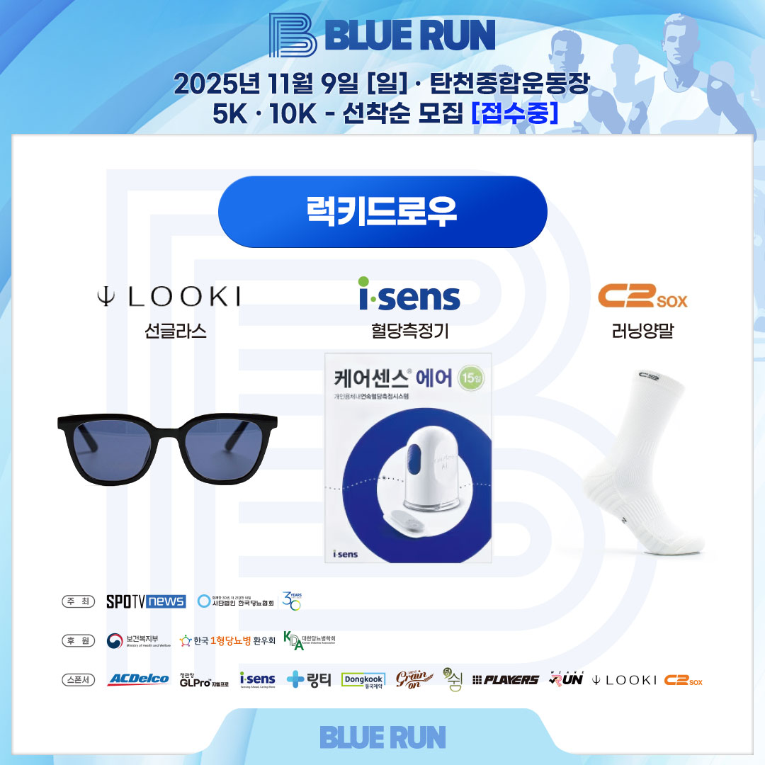 제2회 ‘블루런’이 오는 11월 9일 경기 성남시 탄천종합운동장 일대에서 열린다. 이번 ‘블루런’은 지난해와 마찬가지로 한국당뇨협회와 스포티비뉴스가 주최·주관하며 보건복지부, 대한당뇨병학회, (사)한국1형당뇨병환우회가 후원한다.