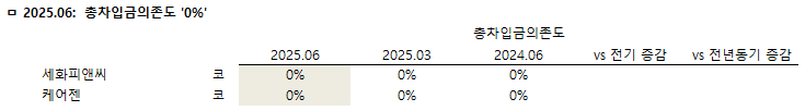 세화피엔씨와 케어젠은 차입금의존도가 0%로 나타났다.