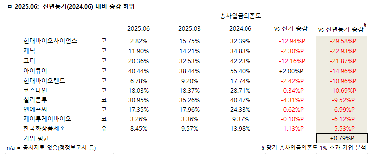 ◇ 2025년 상반기 총차입금의존도 전기대비 감소율 상위 10개사