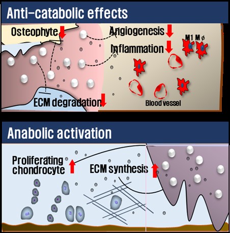스페로큐어는 주사 치료 방법으로 시장성은 물론 환자와 의사의 접근성 면에서도 장점을 갖는다. 비임상에서 한 번 주사만으로 연골재생, 항분해, 항염증, 면역조절 등의 작용 기전이 있음을 확인했다.