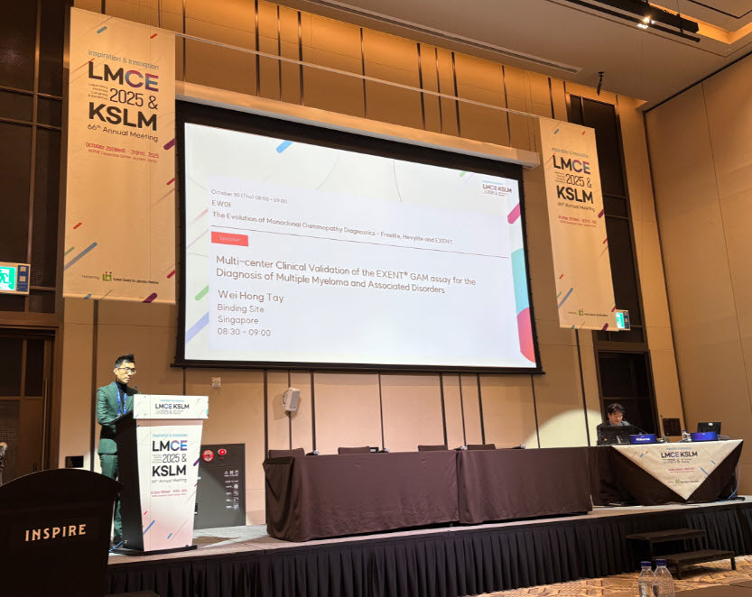 임상 사례 연구에서는 EXENT 시스템이 기존 전기영동(sPEP/IFE) 검사로는 검출되지 않았던 재발 신호를 3.5개월 더 빨리 탐지한 연구결과가 소개돼 참석자들의 큰 주목을 받았다. 이는 완전관해(CR) 평가 불확실성을 획기적으로 줄여줄 것으로 기대된다.