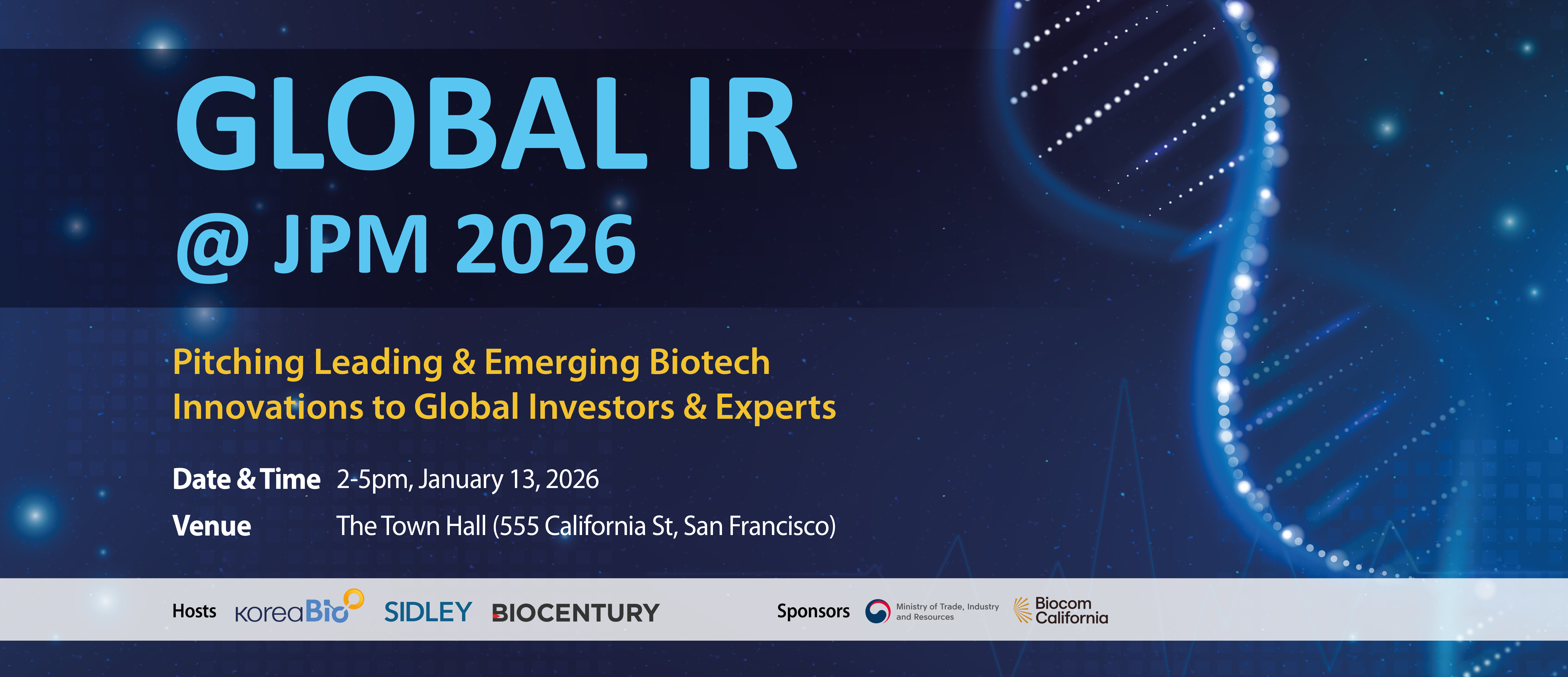‘글로벌 IR @JPM 2026’은 한국바이오협회, 시들리 오스틴(Sidley Austin LLP), 바이오센추리(BioCentury)가 공동 주최하고, 산업통상부와 캘리포니아 바이오협회(Biocom California)가 후원한다.