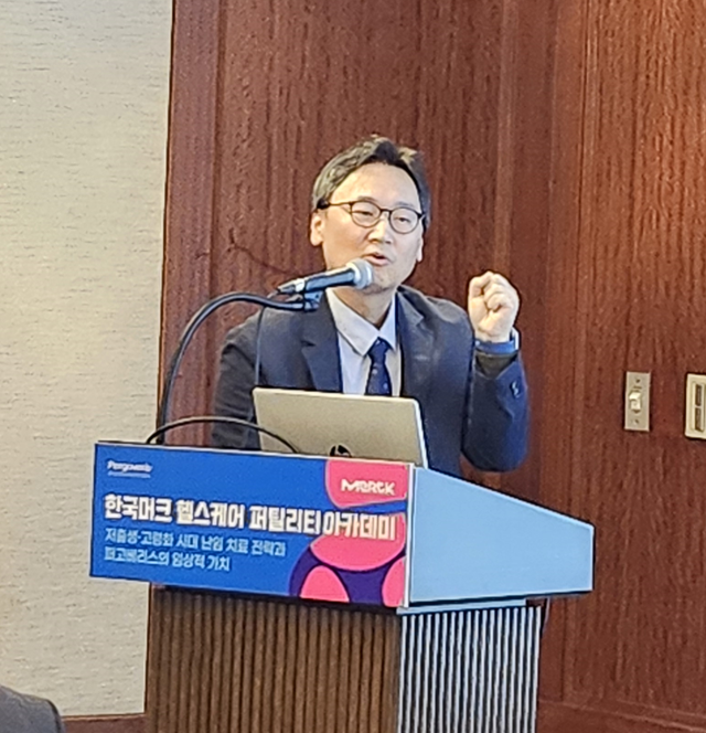 두 번째 세션에서는 한국머크 헬스케어 난임사업부 김욱 총괄이 난임 치료 분야에서의 기업 전략과 사회적 책임 활동을 소개했다. 그는 머크가 100년 이상 생식의학 분야에 기여해온 글로벌 기업으로서 체외수정 전 단계를 아우르는 360° 난임 치료 포트폴리오를 제공하고 있다고 설명하며, 단순히 치료제를 공급하는 것을 넘어 저출생 대응을 위한 다양한 사회적 활동을 추진하고 있다고 발표했다. 그 일환으로 아시아·태평양 지역 저출생 대응을 위한 ‘퍼틸리티 카운츠(Fertility Counts)’, 기업·정부·학계 협력을 위한 ‘가족친화미래포럼(FFFF)’, 난임 환자 단체와의 협업 프로그램 등을 소개했다.