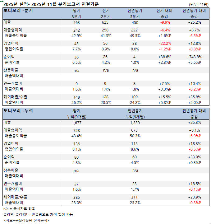 | 05 | [기업분석] 토니모리 3분기 매출 563억…전기... |