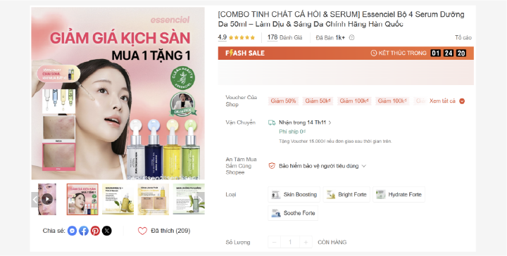 에센시엘의 세럼 4종 세트 판매 페이지. ⓒ쇼피 베트남