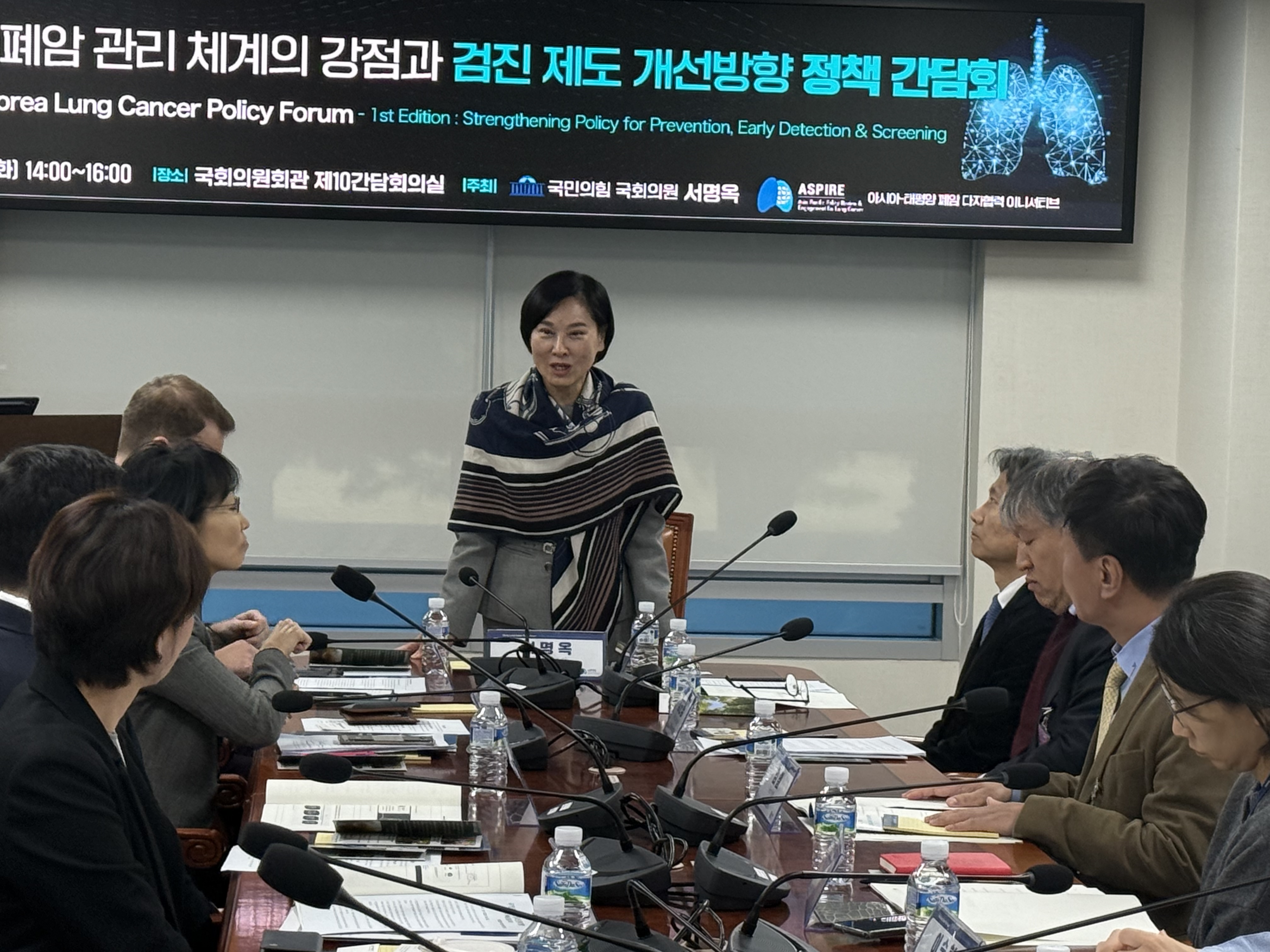 국회 보건복지위원회 서명옥 의원은 개회사를 통해 "대한민국은 지난 20여 년간 세계적으로 인정받는 암 예방 및 조기검진 모델을 구축했다"며 "특히 2019년 도입된 '국가 폐암검진 제도(저선량 흉부 CT)'는 세계 최초의 공공 검진 사례이자 혁신적인 모델로, 폐암 생존율 향상에 기여하고 있다"고 말했다.