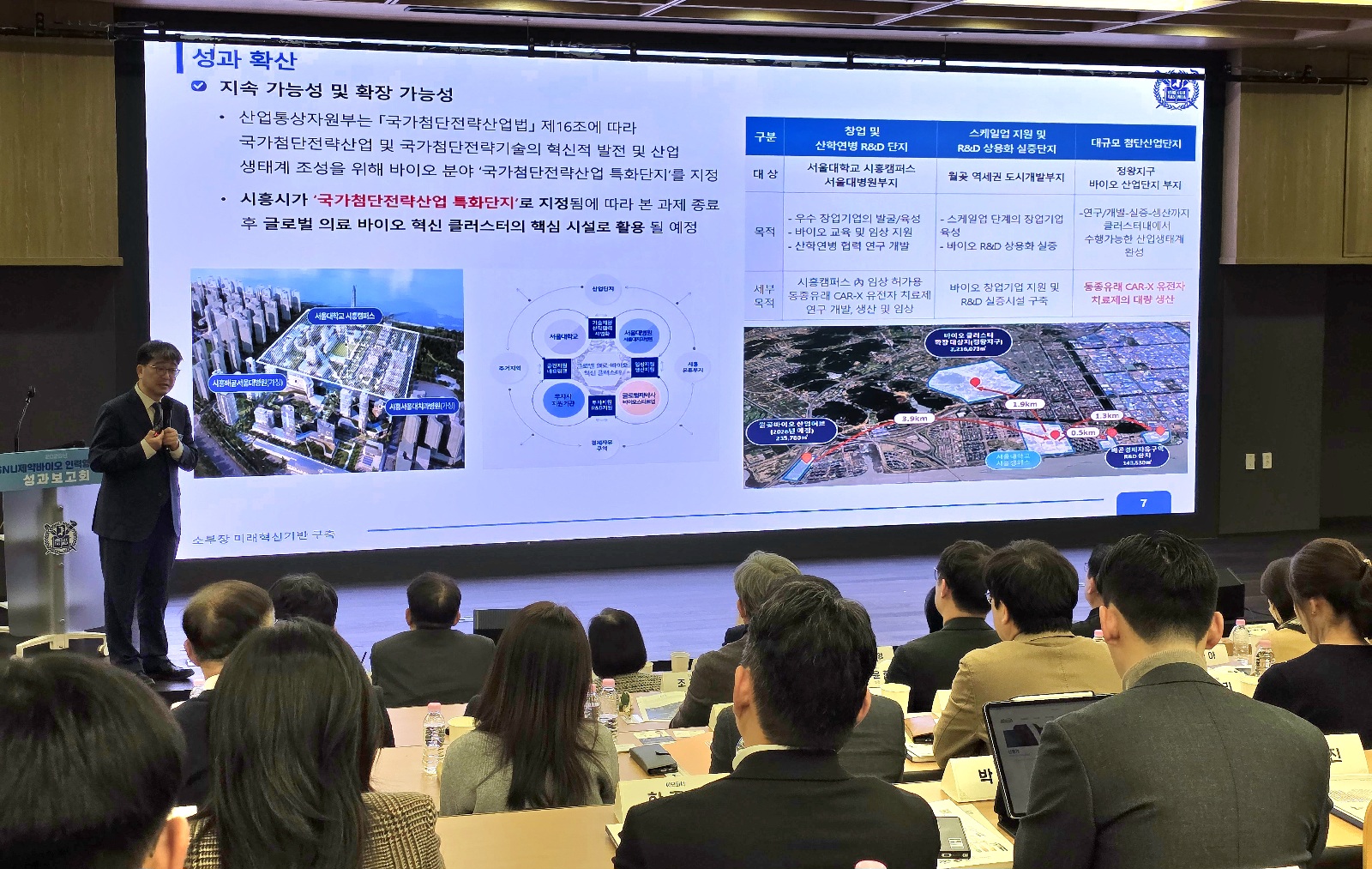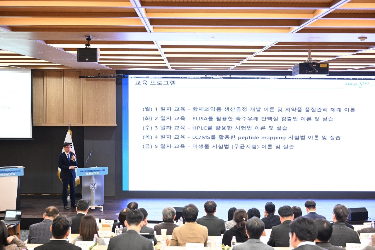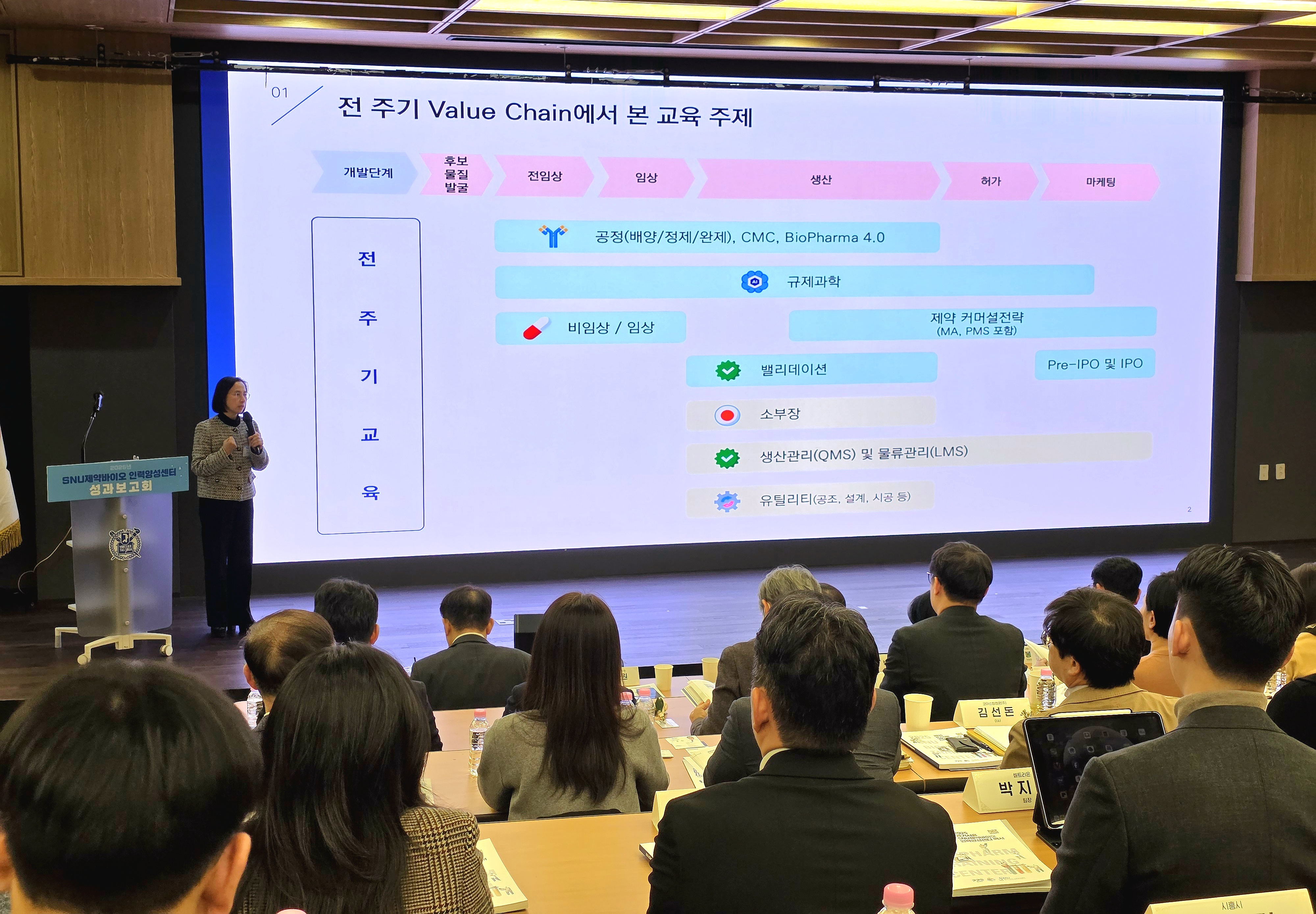 SNU제약바이오인력양성센터(이하 센터)가 19일 경기 시흥 서울대 시흥캠퍼스에서 성과보고회를 열고, 지역·산업·글로벌 수요를 반영한 중장기 교육 전략을 논의했다. 이날 시흥시와 경기도, 제약바이오 및 장비 기업, 산학계 협회 및 단체 등 현장의 이해관계자들이 패널로 참여해 센터의 교육 방향성과 사업 전략을 놓고 의견을 주고받았다.