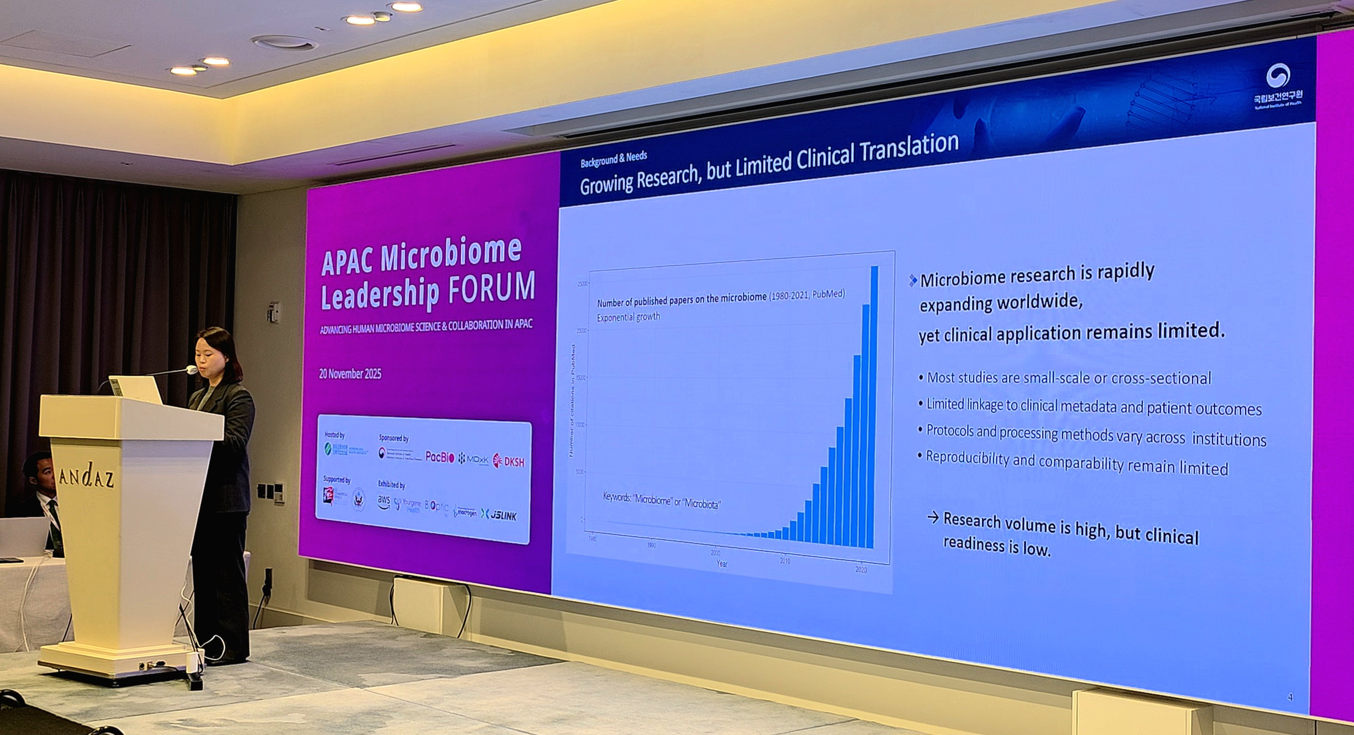 이번 포럼은 아시아·태평양 지역의 정부·학계·산업계 전문가들이 한자리에 모여 마이크로바이옴 연구의 최신 과학, 임상 적용, 데이터 표준화, 규제 방향을 논의하기 위해 마련됐다. 특히 인간 마이크로바이옴 기반 신약·진단 개발을 활성화하기 위해 APAC 주요 연구기관과 기업들이 협력 방안을 집중적으로 논의했다.