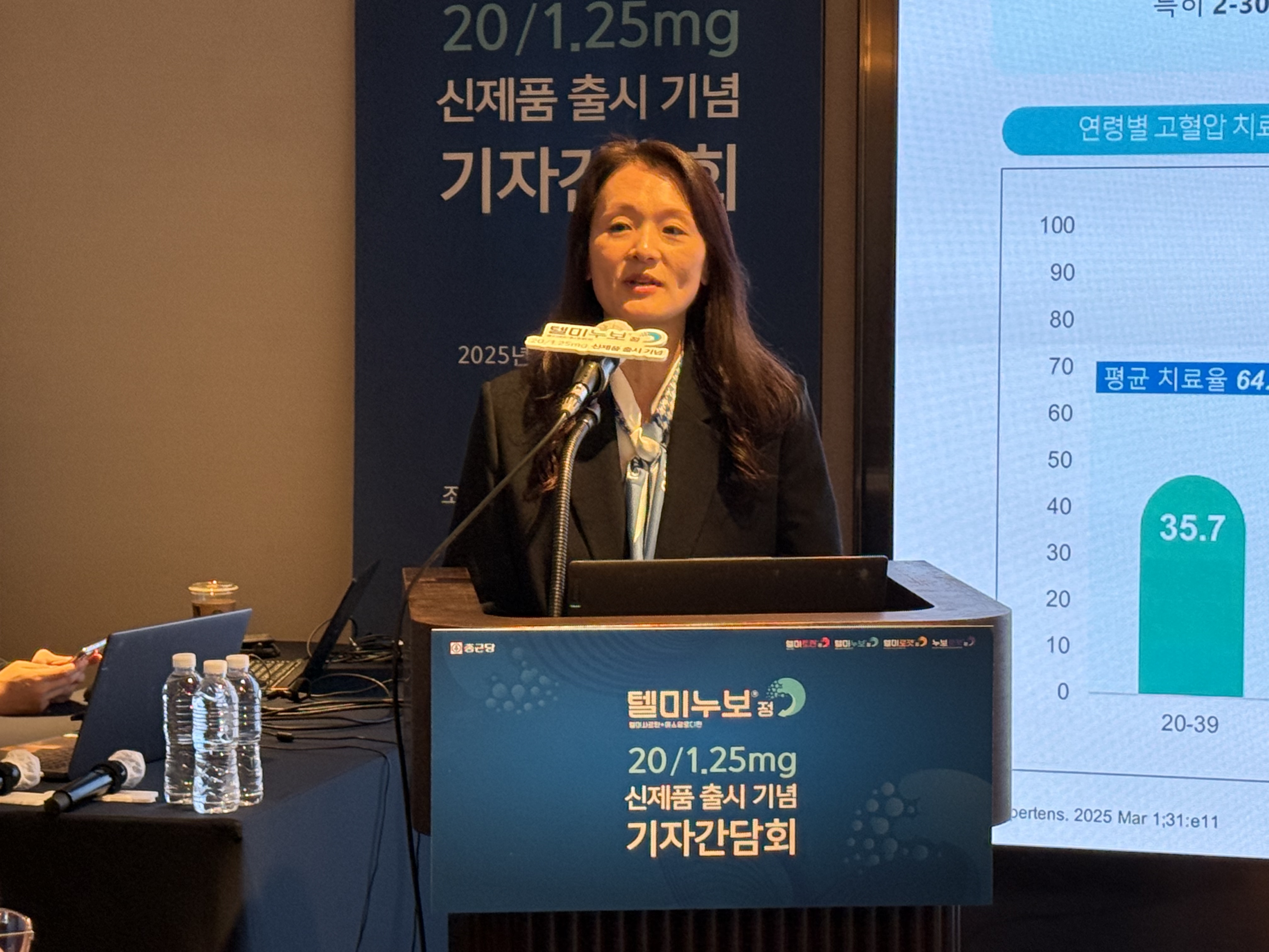 윤수아 종근당 CV사업부 이사는 '텔미누보 20/1.25mg'의 개발 배경과 제품의 특장점을 소개했다.