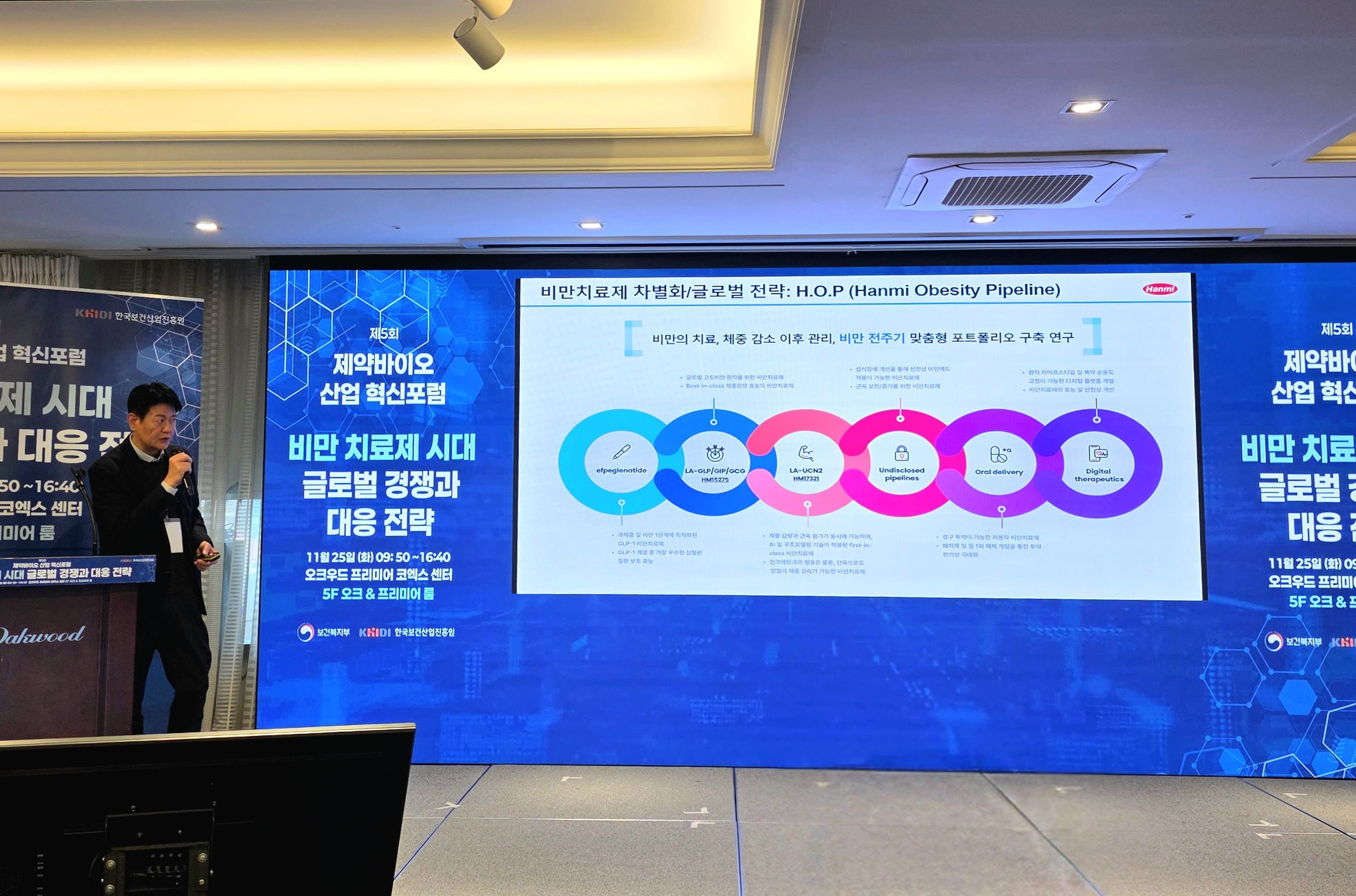 한미약품 최인영 R&D센터장의 말이다. 최 센터장은 25일 서울 오크우드 프리미어 코엑스 센터에서 열린 ‘제5회 제약바이오산업 혁신 포럼-비만 치료제 시대 글로벌 경쟁과 대응 전략’에 연자로 참석해, ‘비만치료제 무한 변신, K-비만치료제 차별화 전략’을 주제로 발표했다.
