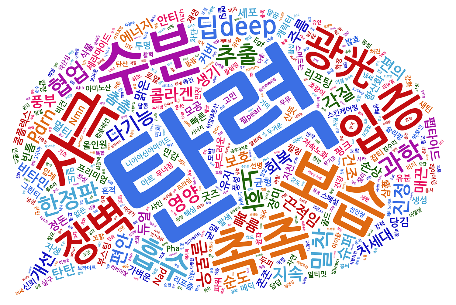약업신문 자매지 뷰티누리 화장품신문이 2025년 10월 신규&리뉴얼 브랜드 커뮤니케이션 키워드를 분석한 결과 화장품 브랜드들이 집중적으로 사용한 주요 키워드는 ‘탄력’ ‘보습’ ‘수분’ 등으로 나타났다. 그 밖에 ‘촉촉’ ‘자극’ ‘입증’ 등도 주요 키워드로 선정됐다.스킨케어에서 탄력·보습 기능을 동시에 강화하려는 흐름이 뚜렷해지면서, 주요 브랜드들이 고보습 크림, PDRN 기반 제품, 노화 예측 기술까지 다양한 방식으로 기능 조합 전략을 확대하고 있다. 원씽은 호호바씨오일을 5만ppm 함유한 ‘호호바 딥 모이스처 크림’을 통해 건조로 인해 약해진 피부에 보습과 수분 공급력을 강화했다. 세라마이드·지방산·판테놀 조합으로 장벽을 안정화하고, 인체적용시험에서 장시간 보습 지속력과 진정 효과가 확인돼 촉촉함을 유지하는 기능에 초점을 맞췄다.
