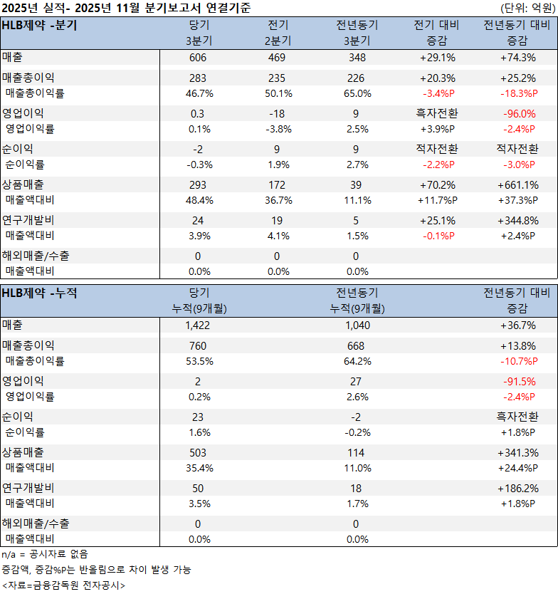 | 02 | [약업분석] HLB제약 3Q까지 누적 영업익 2억... |
