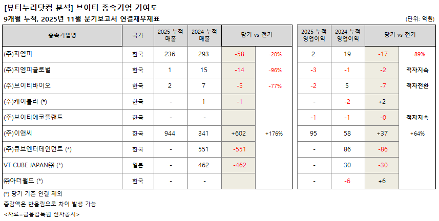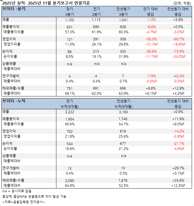 | 05 | [기업분석] 브이티 3Q 순익 88억…전년比 73.6%↓ |