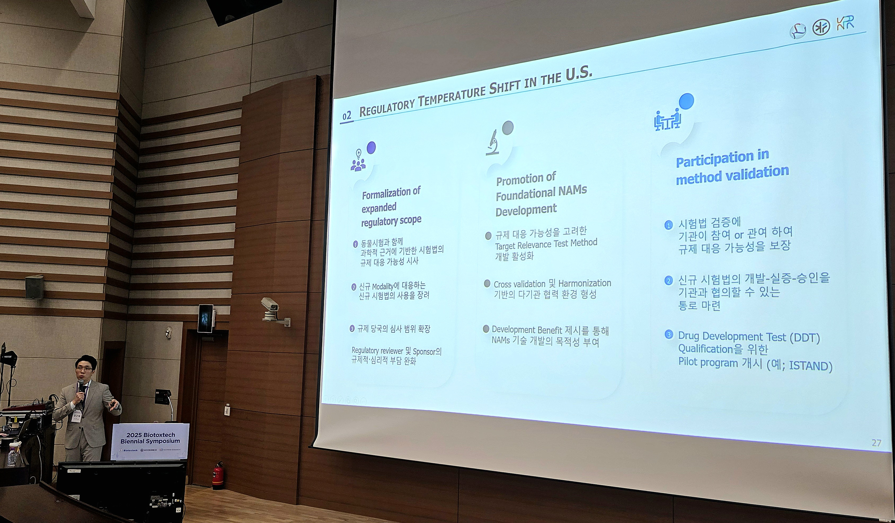 이어 그는 “글로벌 규제 환경은 NAMs 중심으로 분명 이동하고 있지만, 그 전환 속도는 기업이 적합성 근거를 얼마나 탄탄하게 마련하느냐에 달려 있다”면서 “NAMs를 동물실험의 즉각 대체재로 보는 것이 아닌, 목적 적합성을 충족하는 통합 모델로 접근해야 IND 경쟁력이 확보된다”고 강조했다.