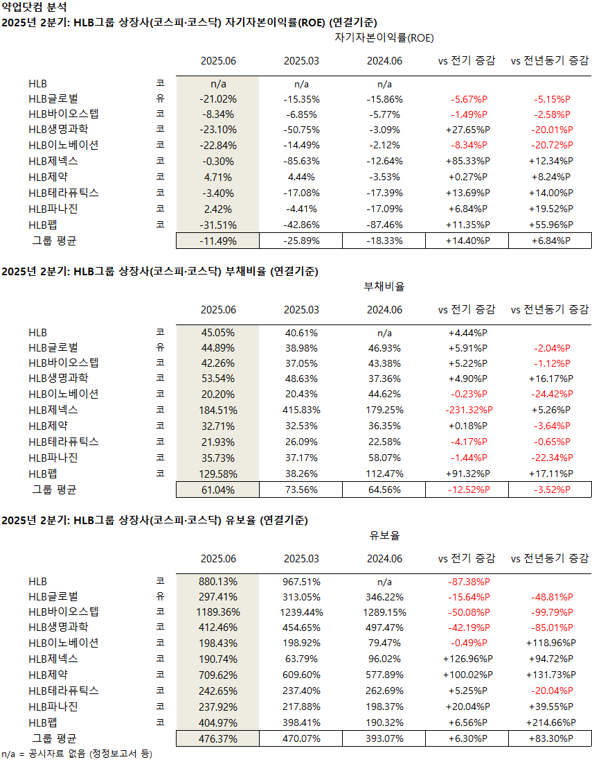HLB그룹 상장사들은 2025년 상반기 ROE·부채비율·이자비용·유보율 등 주요 재무지표 항목에서 큰 편차를 보였다.