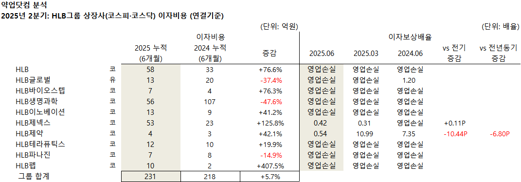 HLB그룹 상장사의 2025년 상반기 ‘이자비용’은 총 231억원으로 나타났다.
