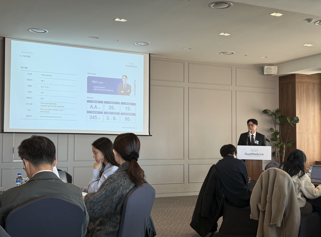 백승기 쿼드메디슨 대표는 "쿼드메디슨은 사용자 경험 중심 바이오 융복합 플랫폼으로서의 마이 크로니들 기술을 실제 제품으로 구현하는 상업화 역량을 갖춘 기업"이라며 "마이크로니들 플랫폼 기술을 통해 기존 제형의 한계를 극복하고, 의약품의 접근성과 효율성을 모두 높이는 약물 전달 패러다임 전환을 선도하겠다"고 말했다.