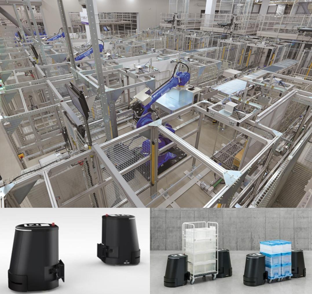 스즈켄이 도입한 자동적재 로봇과 NEC 운송로봇 등 스마트 로지스틱스 기반 자동화 시스템.