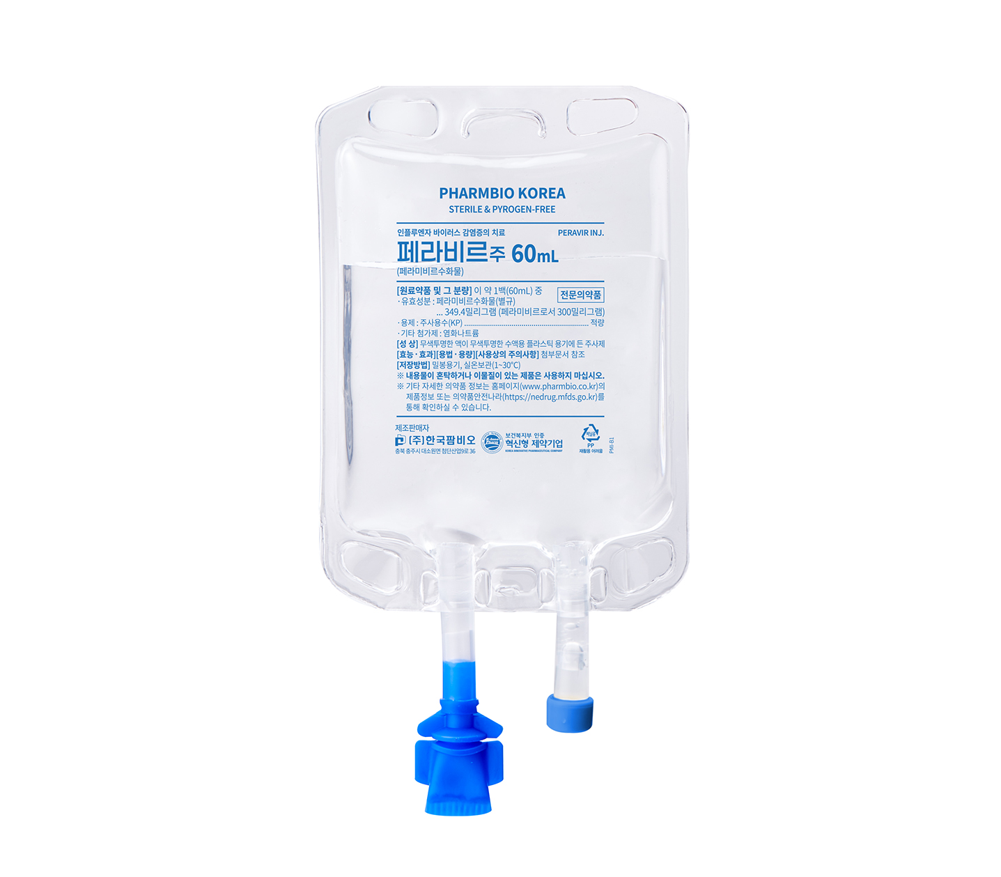 ‘페라비르주’는 페라미비르수화물 300mg 성분을 함유한 정맥주사제로, 성인 및 2세 이상 소아의 A형·B형 독감 치료에 적응증을 갖는다. 별도 조제 없이 바로 투여할 수 있는 60mL 프리믹스 제형으로 출시돼 외래·응급진료 환경에서 시간과 비용 부담을 줄이는 것이 특징이다. 경구 투약이 어려운 환자에게도 투여가 가능해 활용도가 높다.