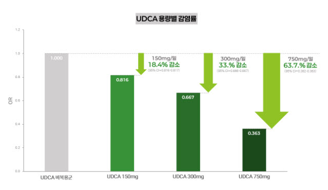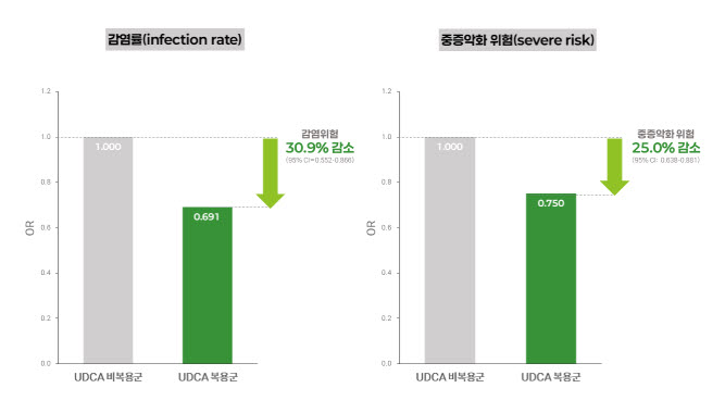 이번 연구는 한국을 포함한 미국, 중국, 일본, 프랑스, 이탈리아 등 총 6개국의 코호트(71만 명) 데이터를 통합 분석해 UDCA의 코로나19 감염 및 중증 악화 억제 효과를 정량적으로 입증한 최초 대규모 분석이다. 또 다국가 데이터를 기반으로 복용량이 증가할수록 감염 위험이 단계적으로 감소하는 경향을 확인하며 UDCA의 예방 효과에 대한 임상적 근거를 한층 강화했다.
