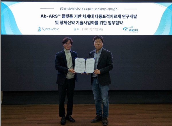 이번 협약을 통해 Ab-ARS™로 확보된 후보물질은 파노로스바이오사이언스 독자 플랫폼 αART® 기술과 결합돼 다중항체 형태 차세대 항체치료제로 개발될 계획이다.