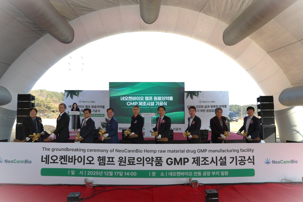 의료용 헴프를 활용한 원료의약품 제조기업 네오켄바이오(대표이사 함정엽)가 17일 경북 안동시 바이오 2차 산업단지 내에서 국내 최초 헴프 원료의약품 GMP 제조시설 기공식을 개최했다.