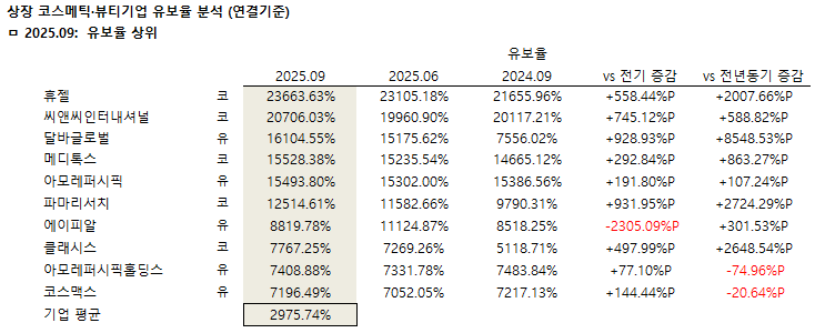 | 04 | [기업분석] 상장 뷰티 기업 2025년 3Q 유보... |