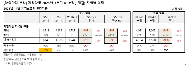 2025년 3분기 해외 매출이 전체 매출의 두자릿수(10%)를 기록해 2025년 2분기보다 6%P 증가, 2024년 3분기보다 9%P 증가했다.
