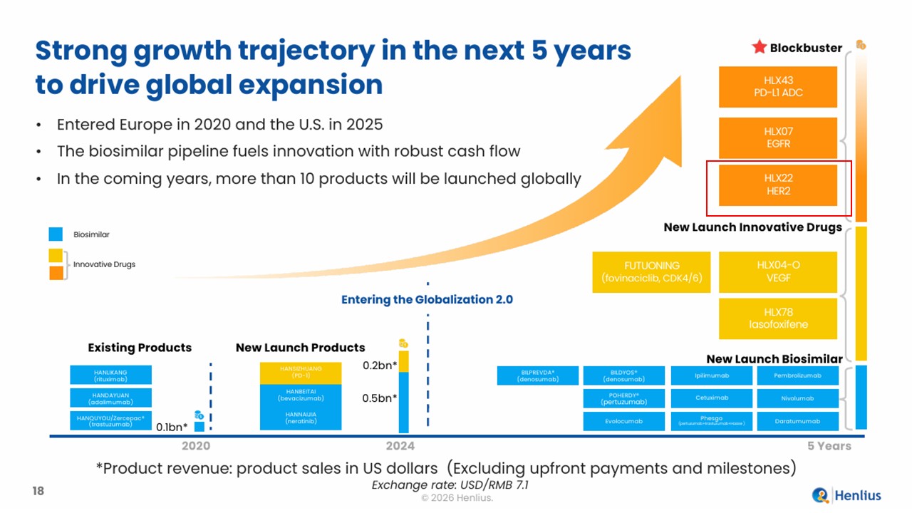 이날 발표 백미는 헨리우스가 공개한 ‘향후 5년 성장 로드맵(Strong growth trajectory in the next 5 years)’ 슬라이드였다. 헨리우스는 해당 장표에서 출시 예정인 수많은 파이프라인 중 AC101(HLX22)을 포함한 단 3개 약물에만 ‘블록버스터(Blockbuster)’라는 칭호와 함께 붉은색 별(★) 표식을 부여했다.