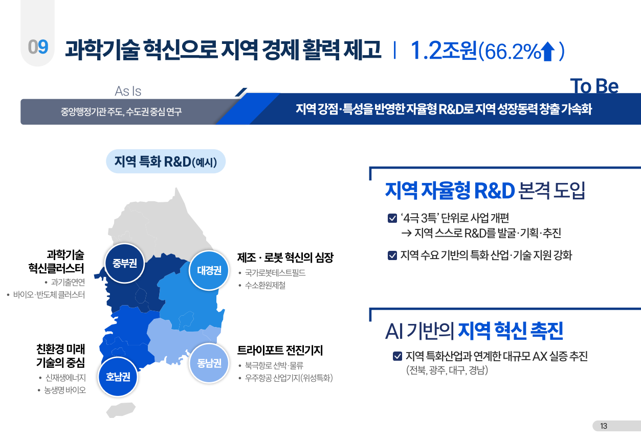 이번 예산의 구조는 기술 주도 성장과 모두의 성장이라는 두 축으로 나뉜다. 과학기술혁신본부가 조정·배분하는 주요 R&D 예산만 30조3000억원에 달한다. 박상민 연구예산총괄과장은 “R&D에 확실하게 투자해 진짜 성장을 추진하는 동시에, 위축되고 피폐해진 연구 현장을 빠르게 회복하는 것이 이번 예산의 핵심 목표”라고 밝혔다.