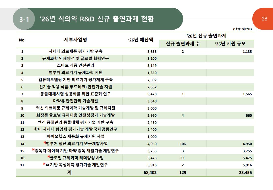 | 03 | [2026 R&D⑥]식품의약품안전처, 1719억 원 편... |