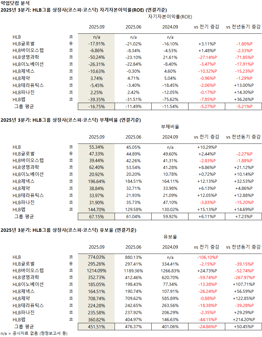 HLB그룹 상장사들은 2025년 3분기까지 전반적으로 부채비율이 상승하며 재무 레버리지 부담이 확대된 것으로 나타났다.