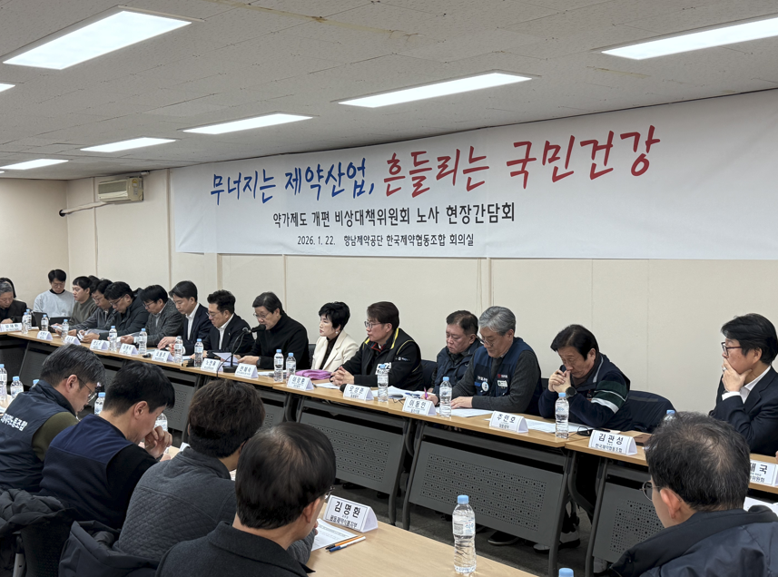 '산업 발전을 위한 약가제도 개편 비상대책위원회'(공동위원장 노연홍·윤웅섭, 이하 비대위)는 22일 경기도 화성시 향남읍에 위치한 한국제약협동조합 회의실에서 '정부 약가 개편안 관련 현장 간담회'를 개최했다.